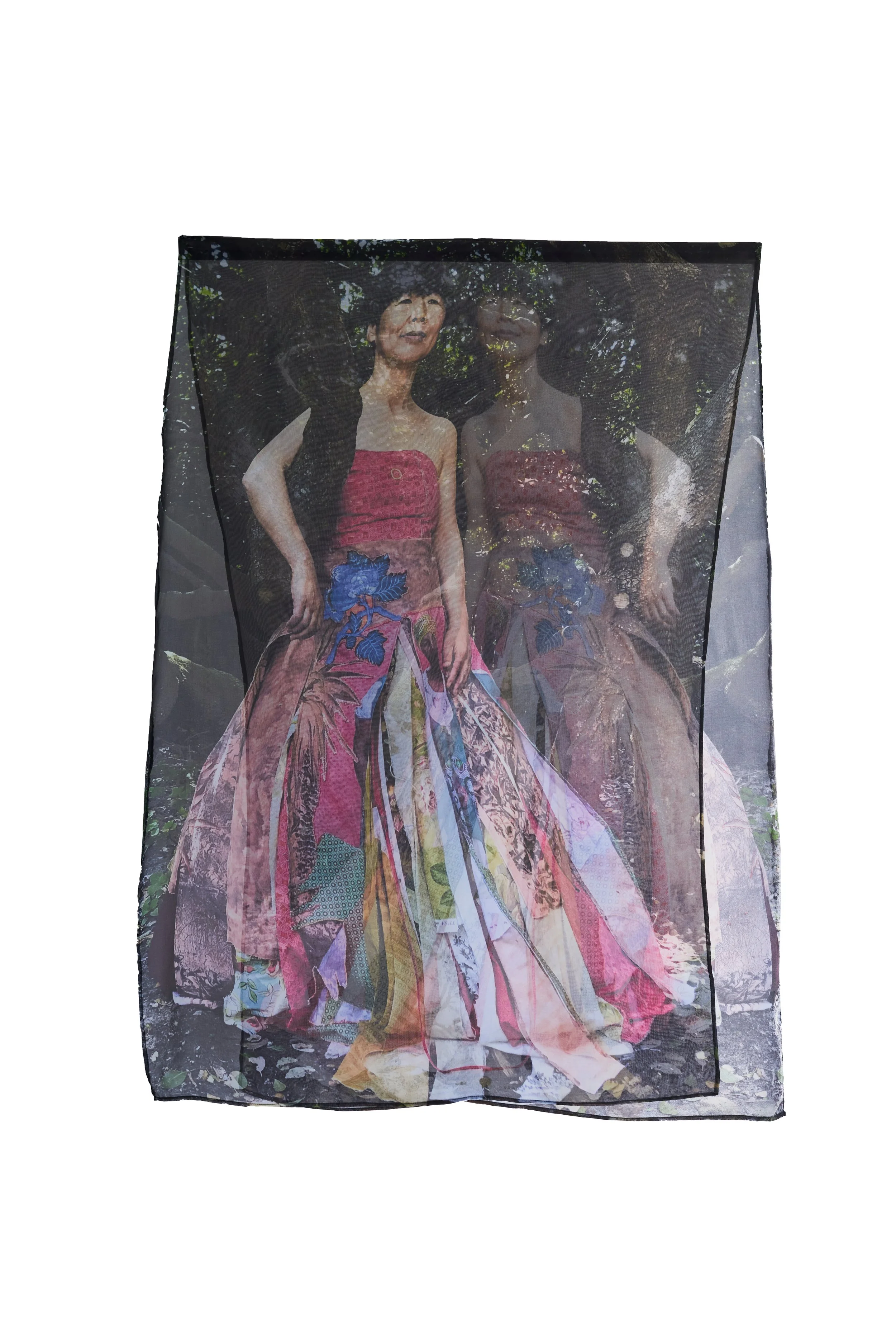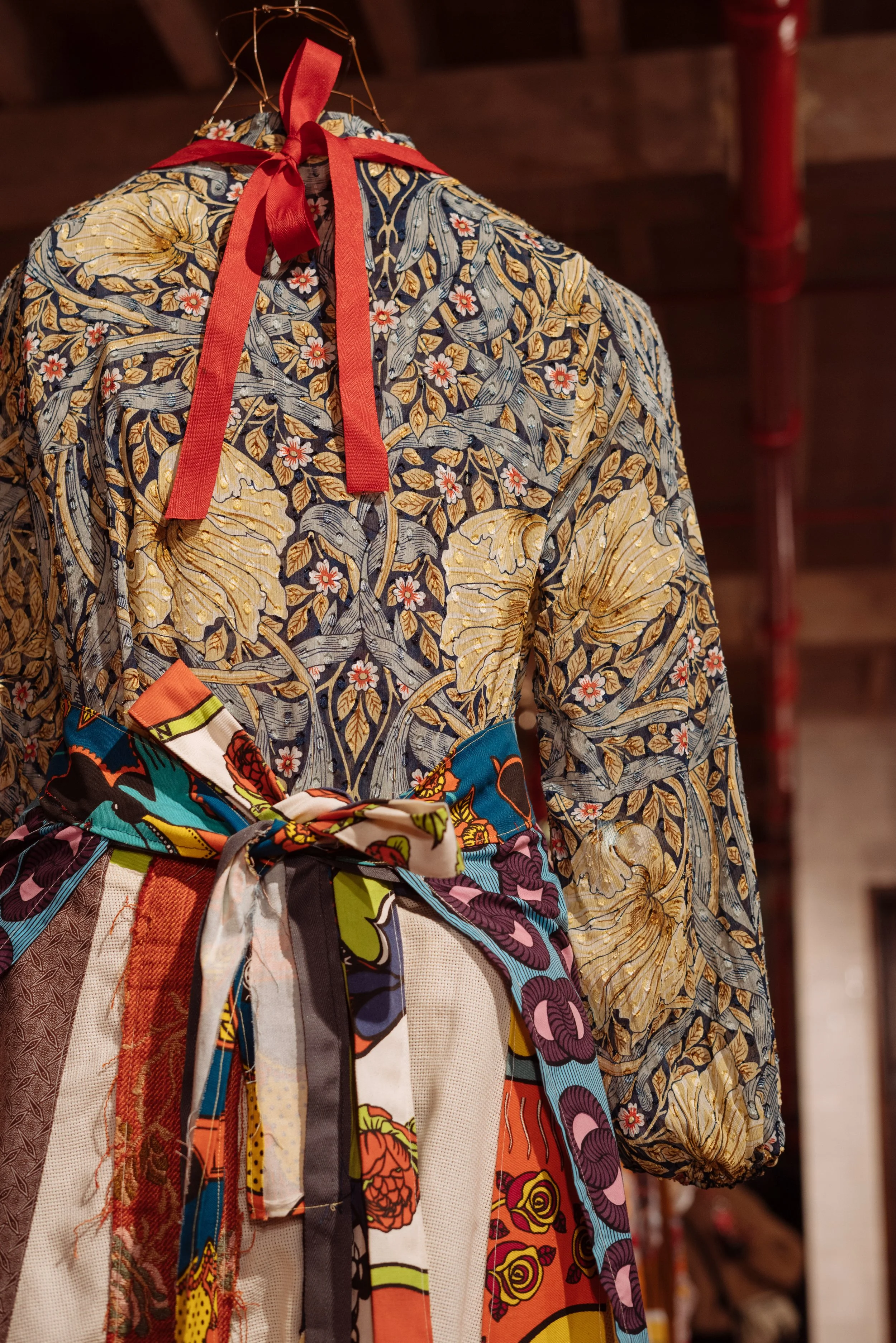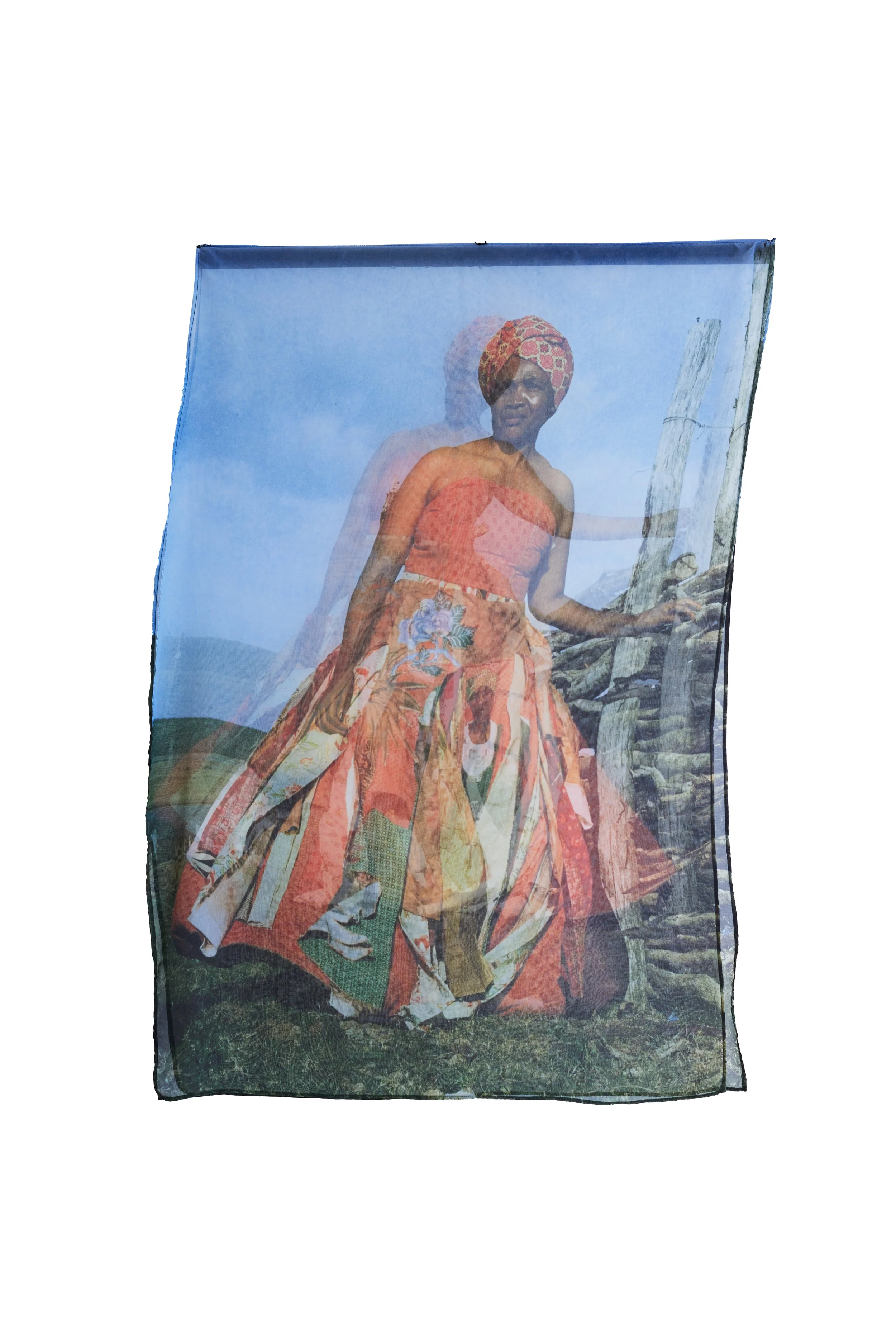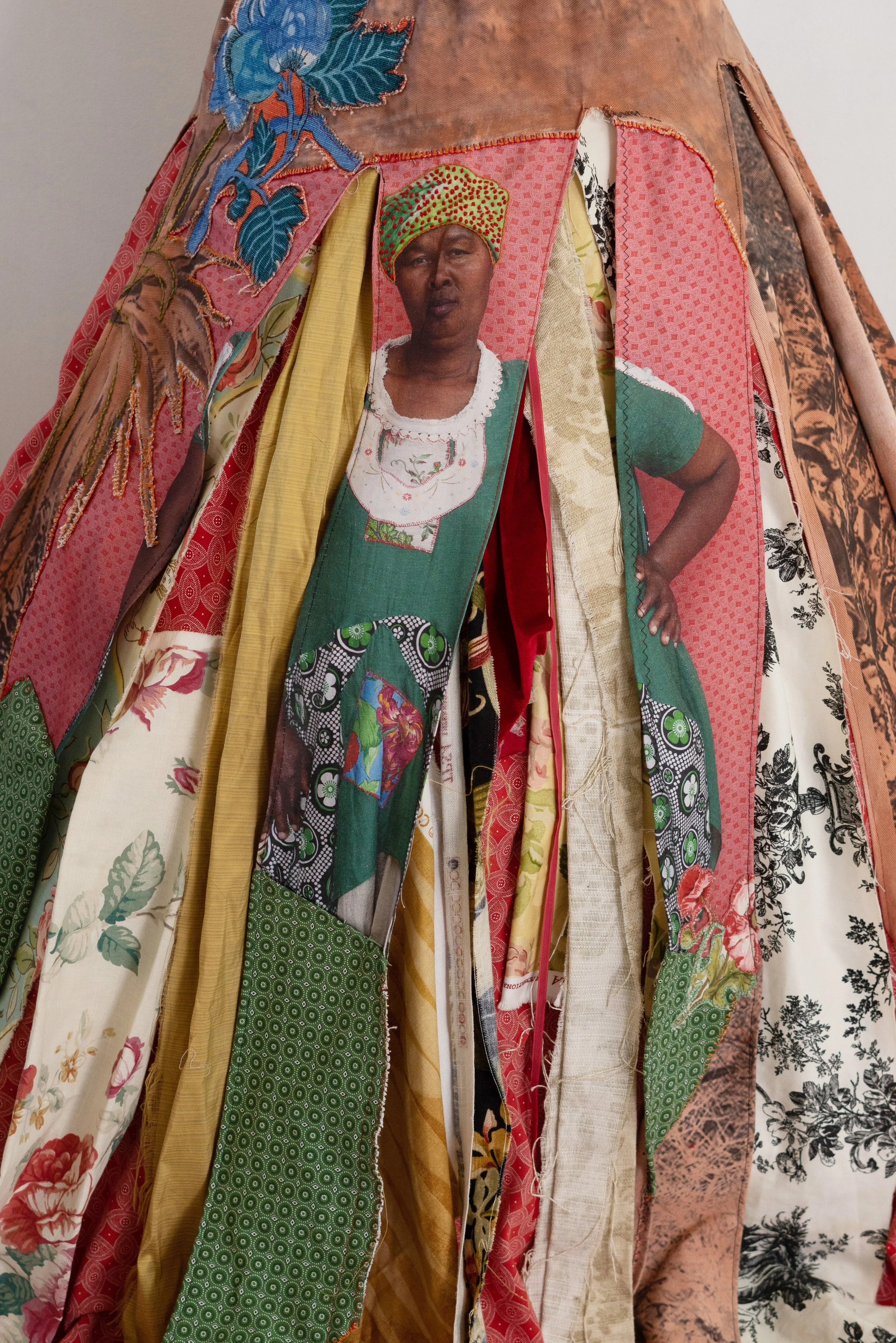 Interlaced moves the personal into the communal, weaving together what has been inherited, suppressed, and shared. African shweshwe and colonial English fabric sit alongside one another; a necklace of found shards of British crockery and military buttons from the Eastern Cape, the land of my colonial forebears, holds the tension between histories that do not easily reconcile. We are a collage of stories, a matrix of past, present and future, womb-like and interwoven. Once repressed trauma is brought into the open and shared, it becomes shot through with light, a kaleidoscope of shifting meanings. The photographic surfaces reflect this: images that dissolve and fragment, like a face seen in moving water. As each person inhabiting the dress voices their truth, something shimmers.... an ephemeral collision of you and I, then and now, a glimpse of something almost remembered.