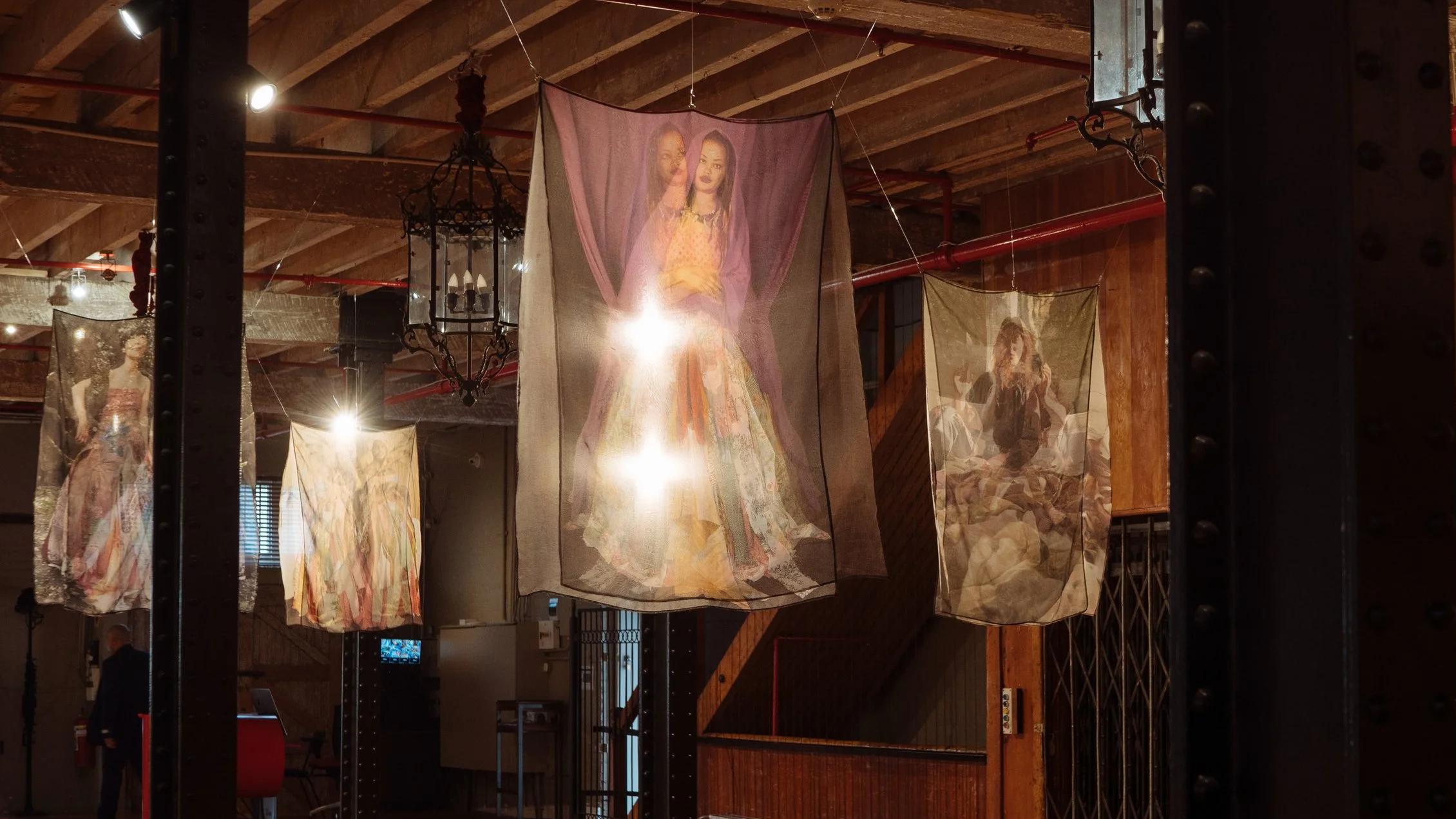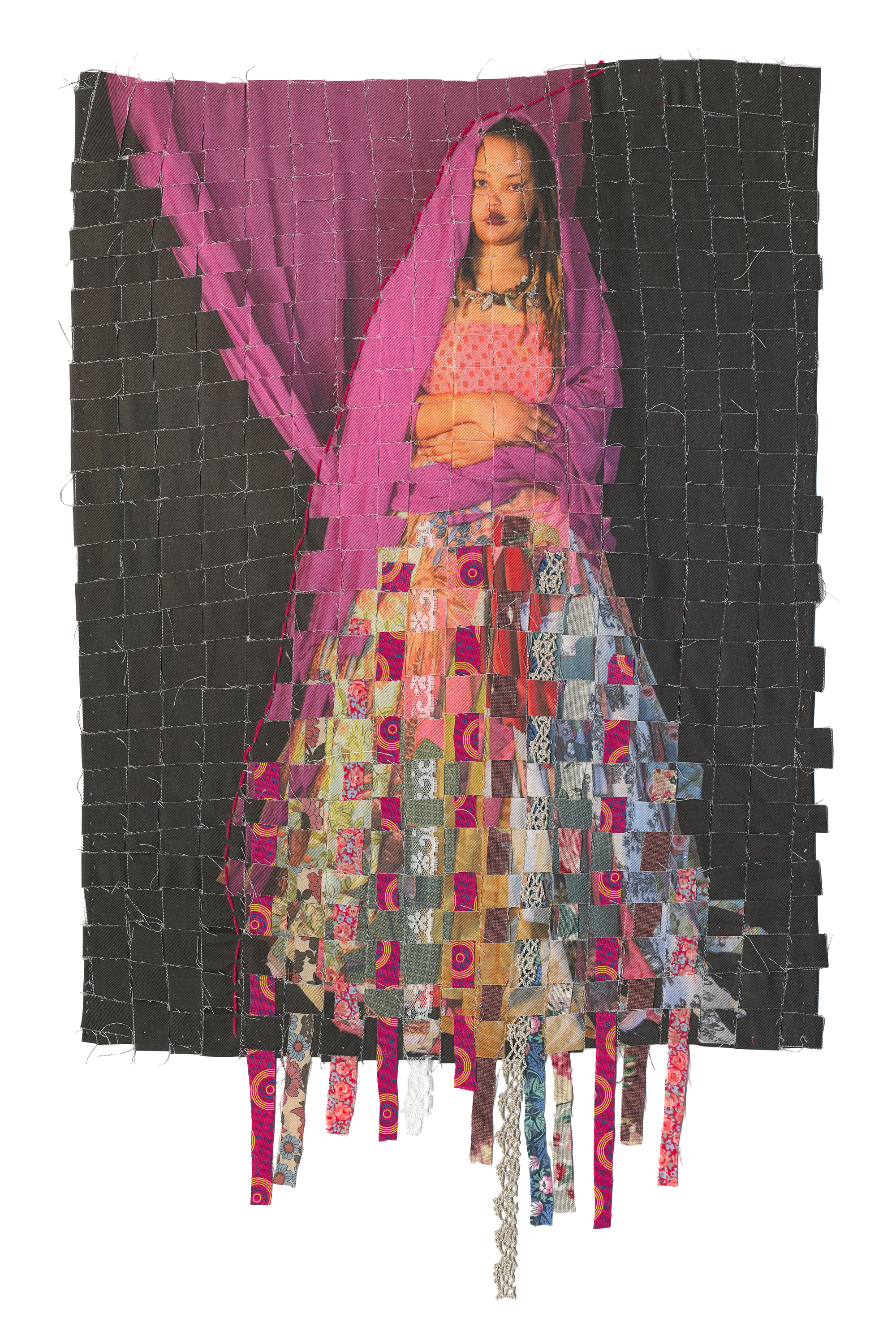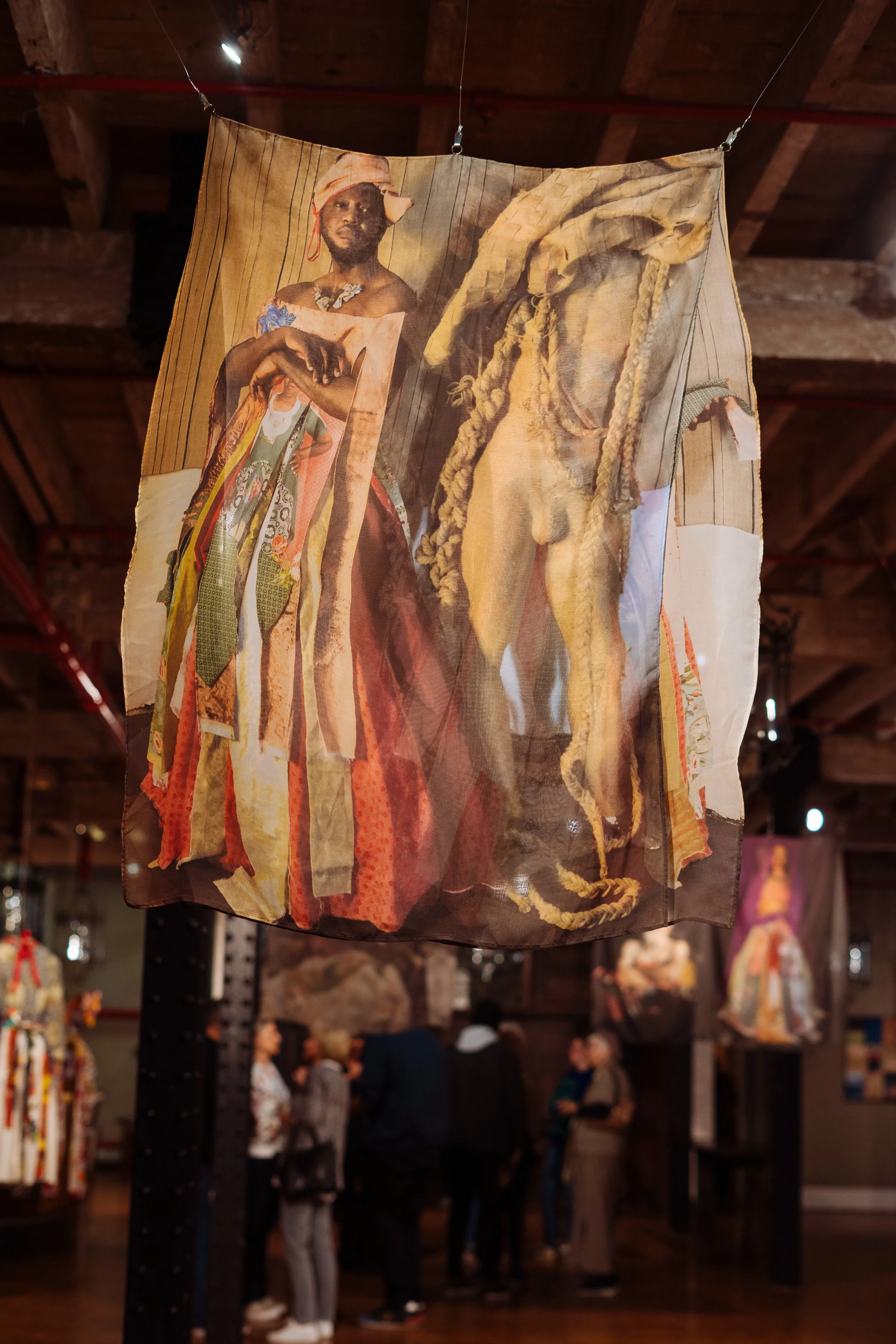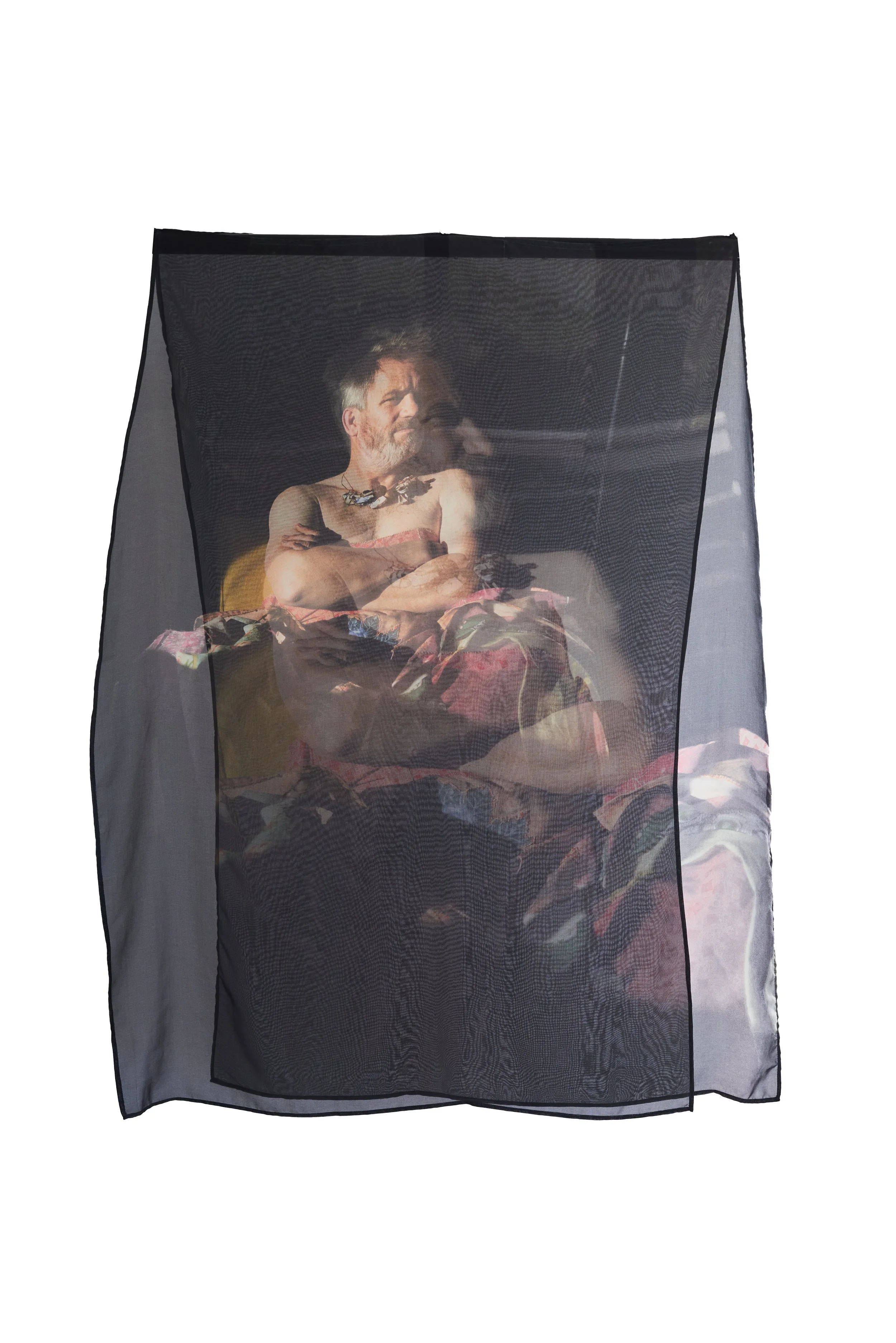 Interlaced moves the personal into the communal, weaving together what has been inherited, suppressed, and shared. African shweshwe and colonial English fabric sit alongside one another; a necklace of found shards of British crockery and military buttons from the Eastern Cape, the land of my colonial forebears, holds the tension between histories that do not easily reconcile. We are a collage of stories, a matrix of past, present and future, womb-like and interwoven. Once repressed trauma is brought into the open and shared, it becomes shot through with light, a kaleidoscope of shifting meanings. The photographic surfaces reflect this: images that dissolve and fragment, like a face seen in moving water. As each person inhabiting the dress voices their truth, something shimmers.... an ephemeral collision of you and I, then and now, a glimpse of something almost remembered.