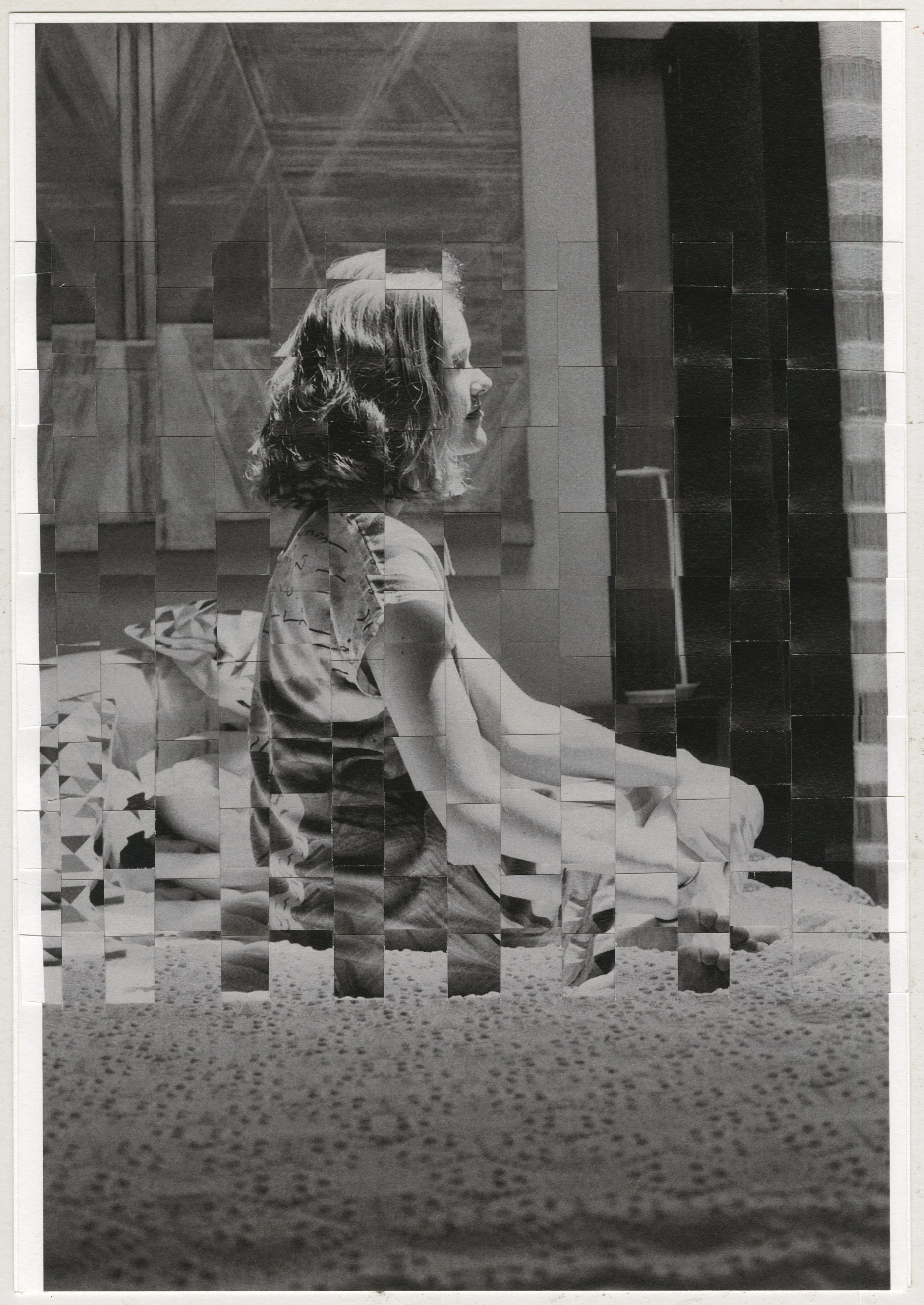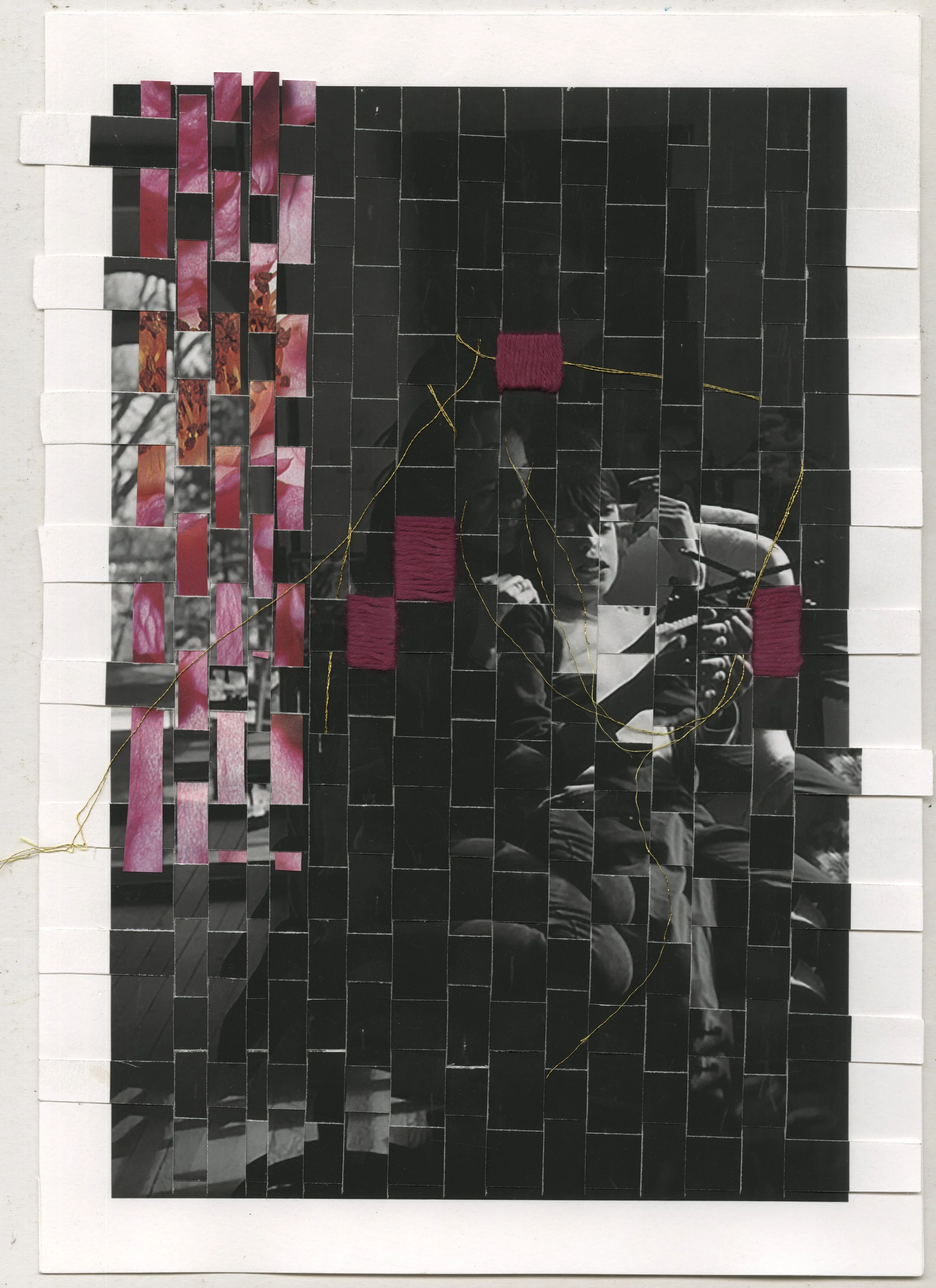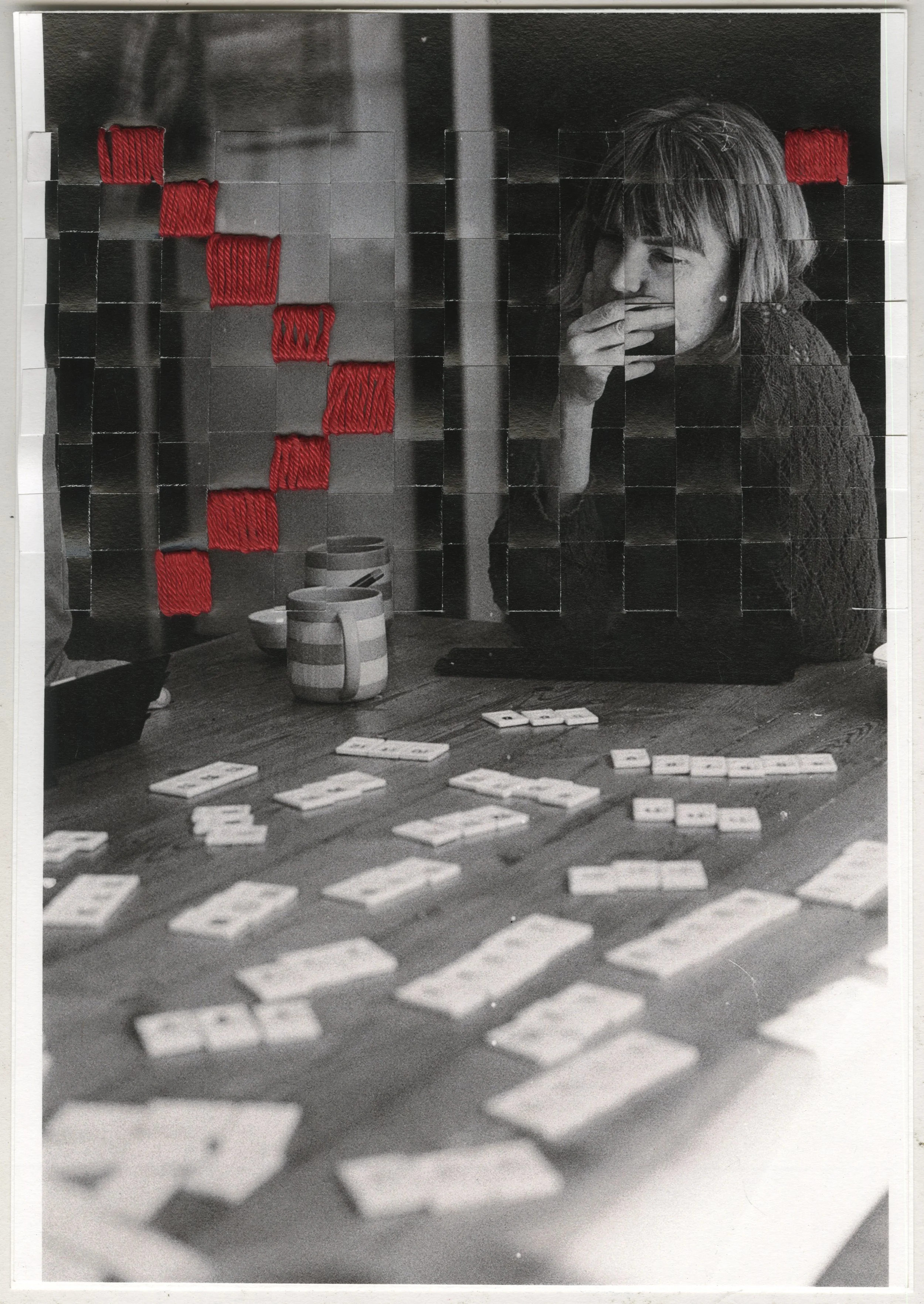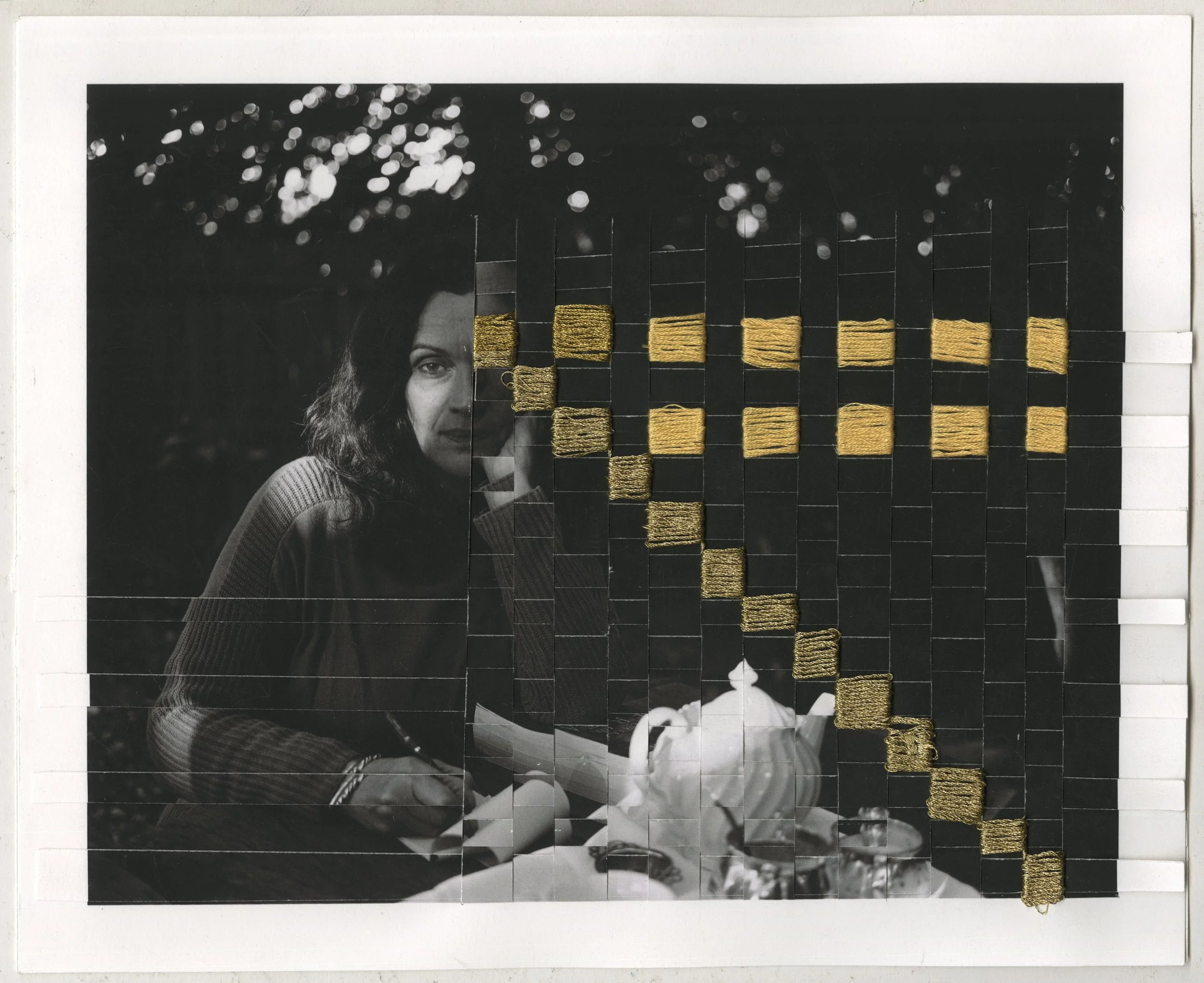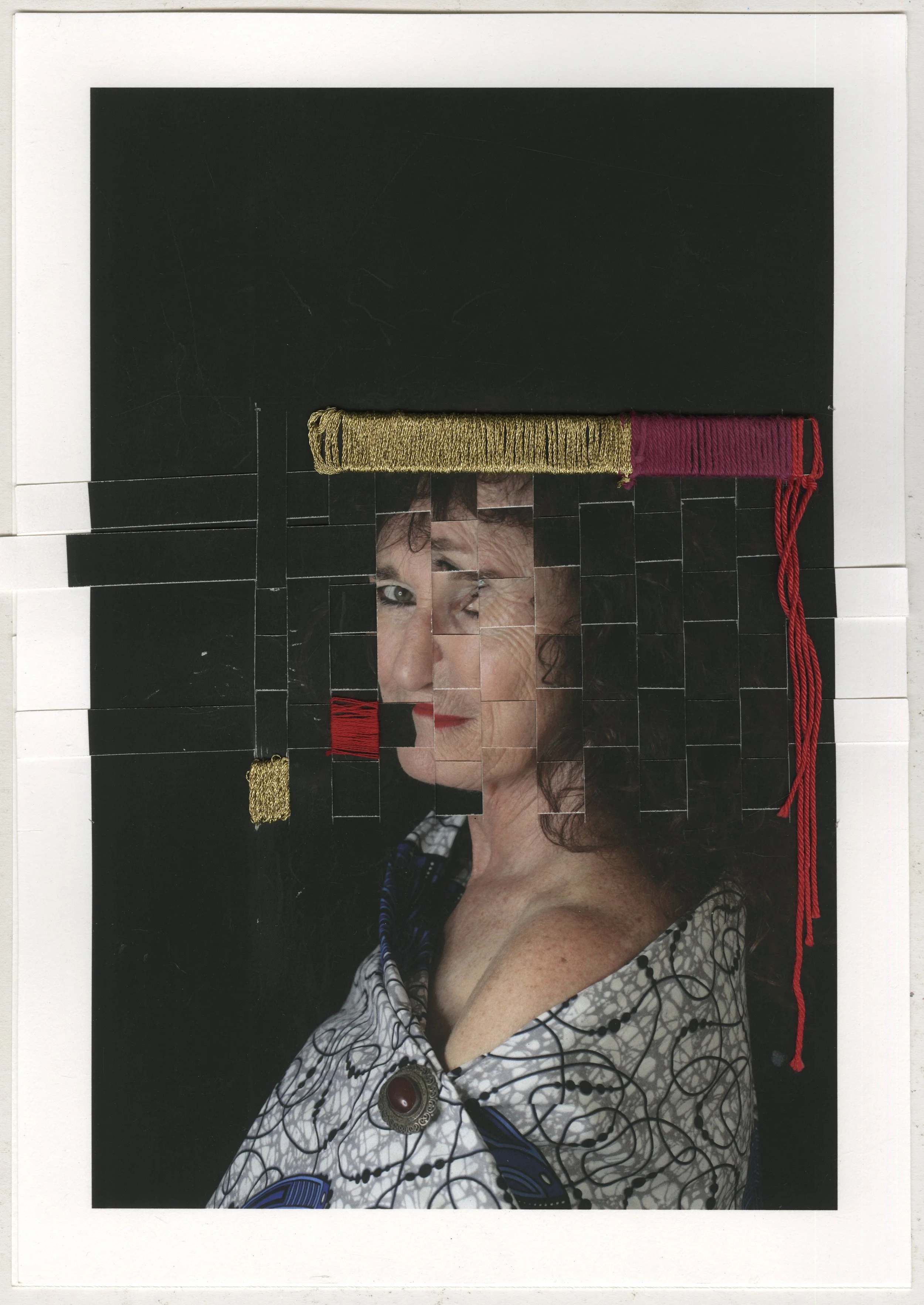 By using stitching in some of the images I mend the fractured but show the scars, unlike the family photos, which never show the wound. Latticing the images holds meaning in things that are part of each other but come from different threads. The process of weaving with photographic paper is a grounding action, yet the paper holds a fragility that needs to be handled carefully.