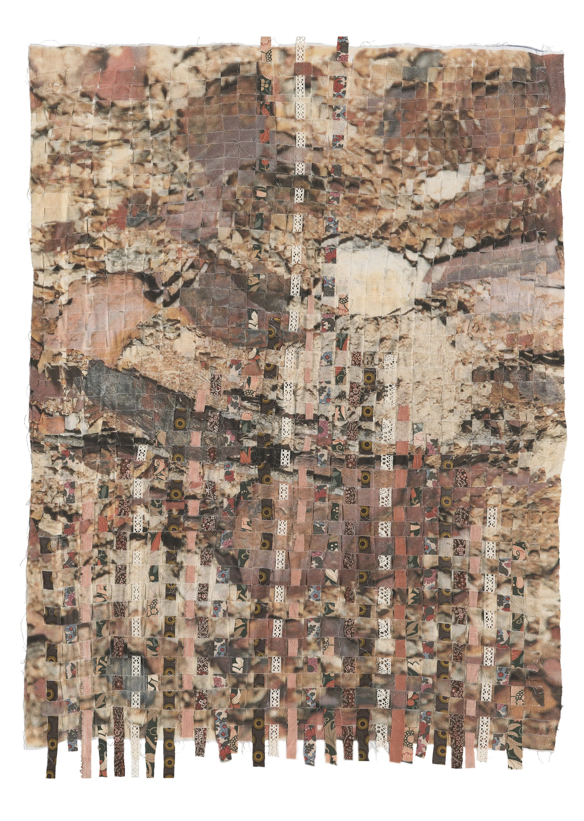 From this I ask: what do we want to remember, and what do we choose to forget? This tension between preservation and erasure is made material through pigments sourced from rocks, ground into clay and worked directly onto and into the photographic surface, grounding the work literally in the earth it contemplates. The land and the image become inseparable, the pigment a kind of memory in itself, carried in the ground long before it was carried in a photograph. Extending photography beyond its conventional boundaries, I bring together photography, textiles, and stitching, a layering of methods that mirrors the layering of memory itself, fragile and accumulated, always in the process of becoming.