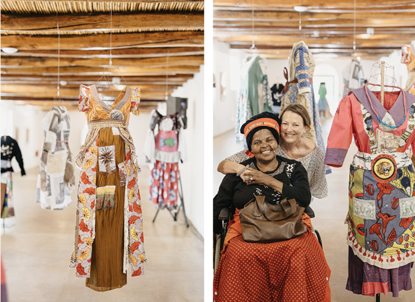 Cuttings 1820–2020 debuted at GFI Art Gallery in Gqeberha in 2020 before being acquired by the Spier Collection. It was later exhibited at Spier Arts Trust, Union House, Cape Town, in 2021 and 2022. In late 2023, it was featured in In Search of the Birds of the Sea, a group exhibition at Spier Farm in collaboration with KAP. Above left: An installation view from the exhibition’s opening. Right: A moment with Nozeti Makhubalo, a KAP collaborator on Cuttings 1820–2020, and I.